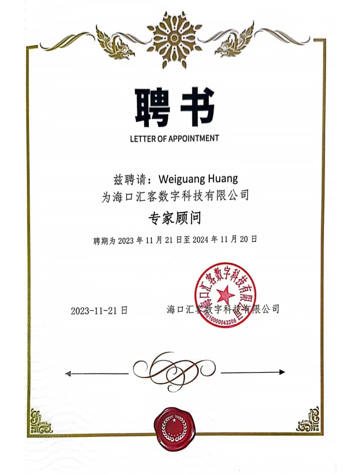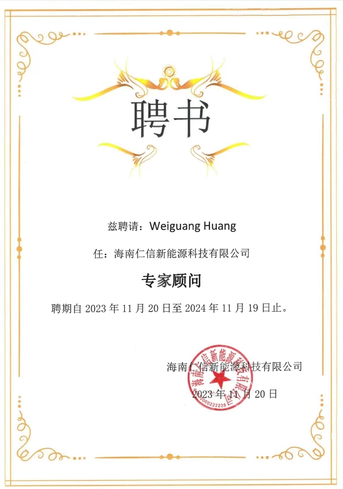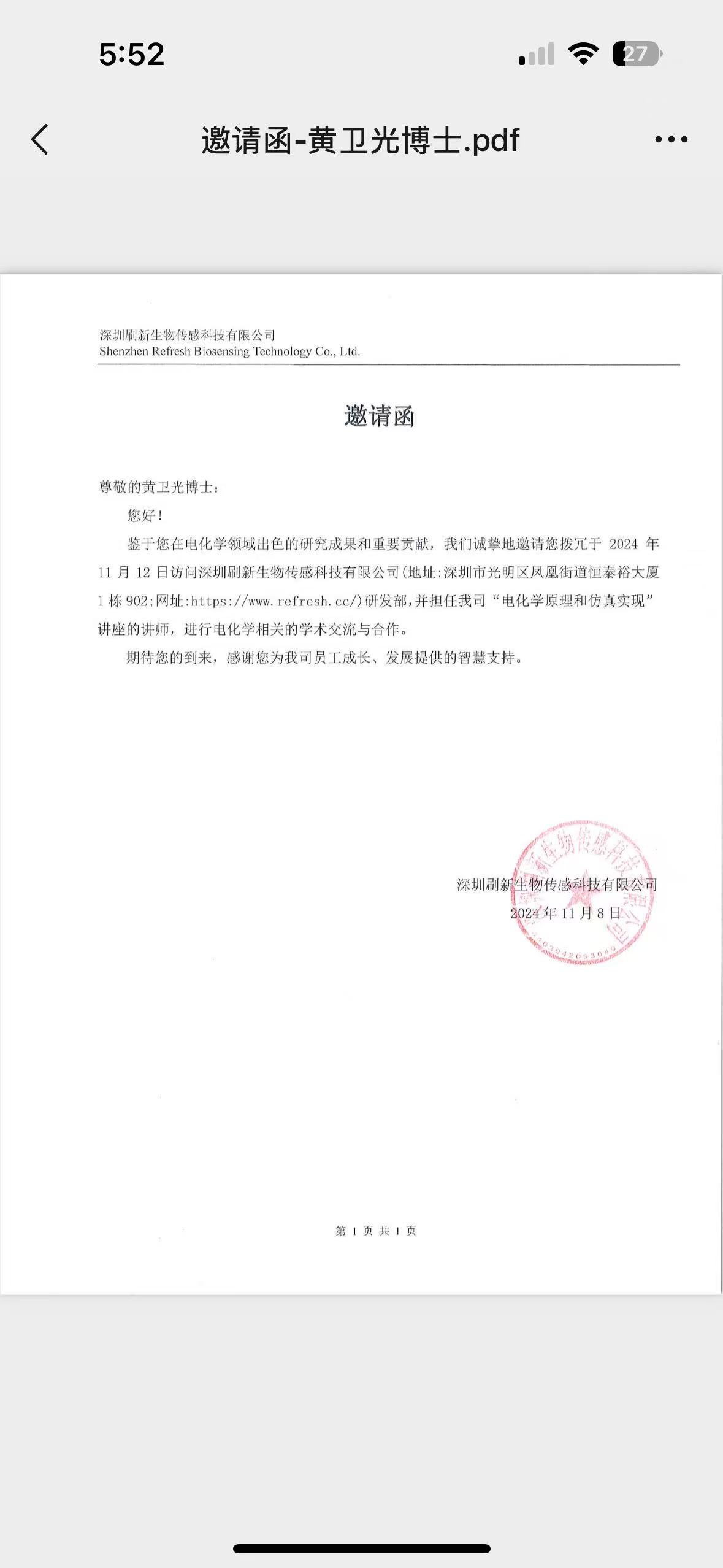 邀请函-黄卫光博士