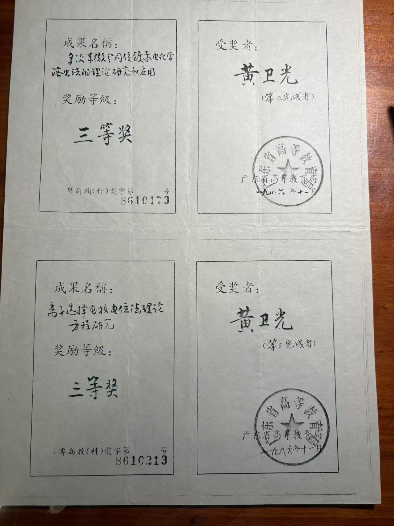 1986年广东省科技奖