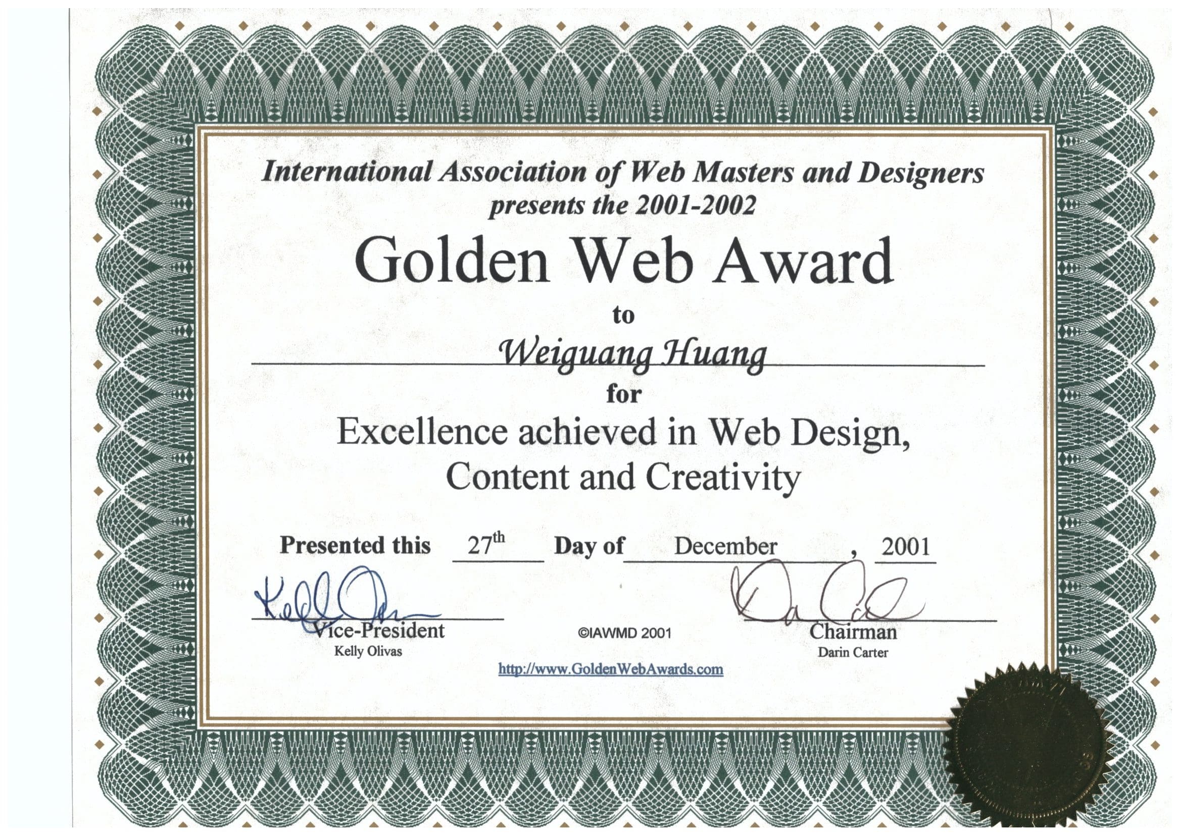2001年国际网站设计师协会的金网奖