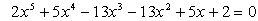 偶数次(n=2k)倒数方程两边除以xk,再令z=x+,则原方程可化为zk次方程,解此方程,得z的值,然后对应的x值可由二次方程