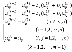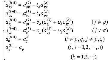 式中I为单位矩阵,tk为适当选定的常数,Ui为雅可比旋转矩阵: