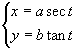 (极坐标方程.极点位于一焦点上,极轴为从焦点背向顶点的射线,p, e如前述.由此方程只能确定一支,另一支可由对称性而得到)