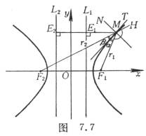 2° 双曲线也是到一定点(焦点之一)的距离与到一定直线(准线L1)的距离之比为大于1的常数(即离心率)的动点M的轨迹(