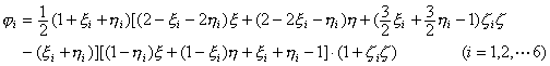 [二十节点六面体] 二十节点包括六面体的八个顶点和十二个棱边的中点(图19.13)。其型函数为