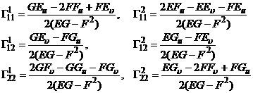式中EFGLMN分别为曲面的第一和第二基本量;六个系数称为第一基本二次型的第二类克里斯托弗尔记号,它们的表达式是