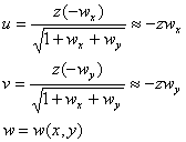 w(x,y)来表示.也就是要得出板中面z=0变形后的弹性曲面z= w(x,y).这时板中面点(x,y,0)的法向线段,依假定只作刚性位移变到该曲面的法向线段(图19.22右),其方向数为