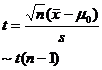Population variance unknown, test whether the population mean is equal to (or less than or greater than) a known constant |