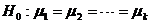 [ One-way ANOVA ] considers the influence of different levels of a factor A on the object under investigation. Test for k different levels A i of A (their distributions are tested to obtain test data ; n k ) assuming (although the value is unknown), test whether the mean of the test results of each A i is significantly different. The inspection steps are as follows:![]()