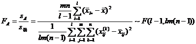 ( 1 ) Hypothesis H 0 : Under the condition, the effect of factor A (or B ) is not significant. ![]()