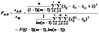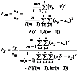 where F AB and F B represent the significance of the influence of factor A and factor B , respectively, and