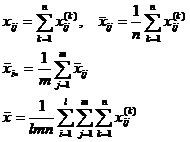 Suppose n times of tests are made under the conditions of factor A i and factor B ij , and the test data is , and the inspection steps are as follows:![]()