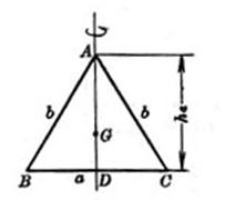 center of gravity Moment of inertia ( a ) The axis of rotation passes through the center of gravity G and is parallel to side a ( Figure ( a )) ( b ) the axis of rotation coincides with the side a of the triangle ( figure ( b )) ( c ) the axis of rotation passes through a vertex A of the triangle and is parallel to side a ( figure ( c ))