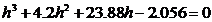 Now to find the approximate value of pure decimals, since the value of the third power or quadratic power of pure decimals is smaller, the first two terms of equation (2) can be temporarily discarded to calculate 21 - 11 = 0 , that is, = 0.5238 .... The last two terms are positive, and this value appears too large . When = 0.500 , the sum of the left-hand terms of equation (2) is still positive (0.375) , and when = 0.400 , the left-hand terms of equation (2) The sum of is negative ( -2.056 ). Therefore, let , i.e. , again applying Taylor's formula for the polynomial, we get the equation for h![]()